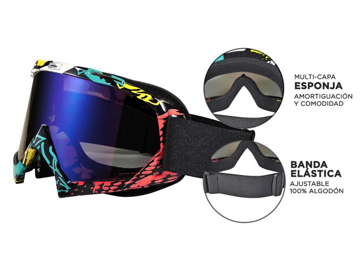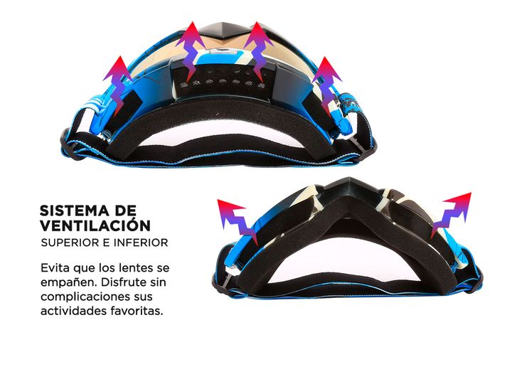 Nuestras antiparras ofrecen 100% de protección contra los rayos UV, con lentes de alta calidad y protección UV400 para garantizarte seguridad total frente al sol. Además, cuentan con tecnología anti-niebla, perfecta para disfrutar de tus actividades sin preocupaciones. La banda elástica es totalment...