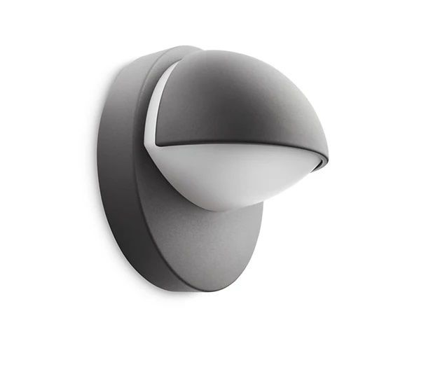 Agrega un estilo contemporáneo a tu jardín. Este apliqué de pared antracita Philips myGarden llama la atención por su forma elegante. Emite una luz blanca cálida de bajo consumo y crea una silueta elegante por la noche.