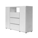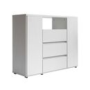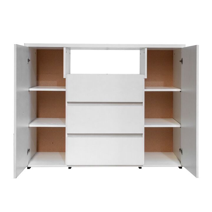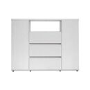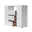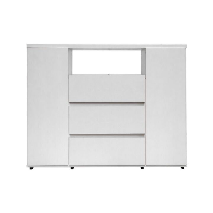 Multifunción de melamina, utilizable como cómoda, mesa de Tv o bahiut, con tres cajones con correderas metálicas, dos puertas, y cuatro estantes internos, y tiradores plásticos. Medidas: Ancho: 1.20 mts. Alto: 0.93 mts. Profundidad: 0.36 mts. Producto seleccionado para venta y entrega “EN CAJA”.