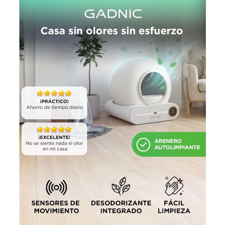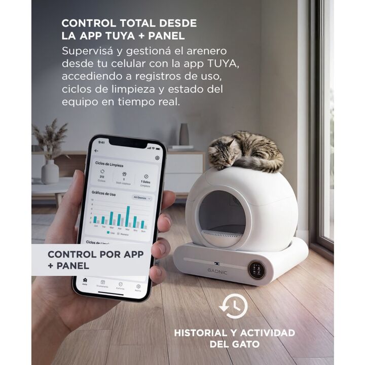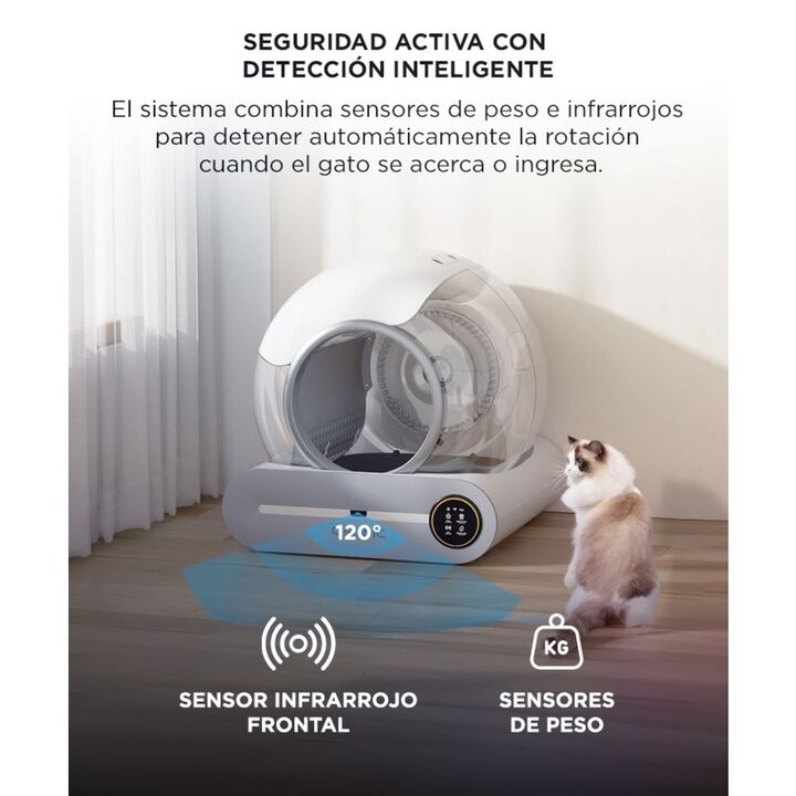 Limpieza automática para uso diario sin intervención: El arenero automático autolimpiable LDAC65 realiza ciclos de limpieza autónomos mediante pala motorizada, manteniendo la bandeja higiénica después de cada uso sin necesidad de limpieza manual constante. Sistema de seguridad activa con sensores in...