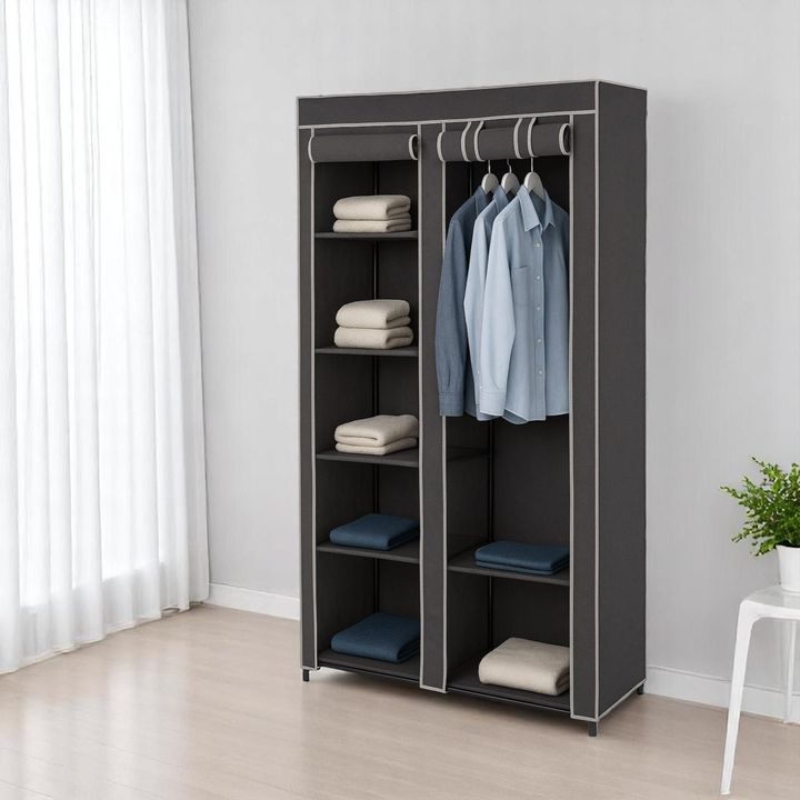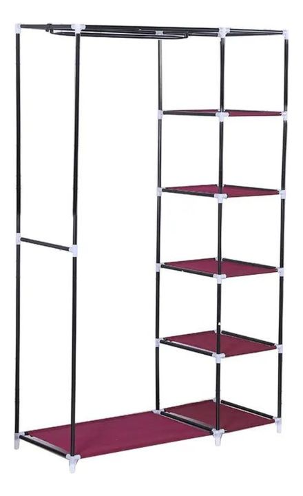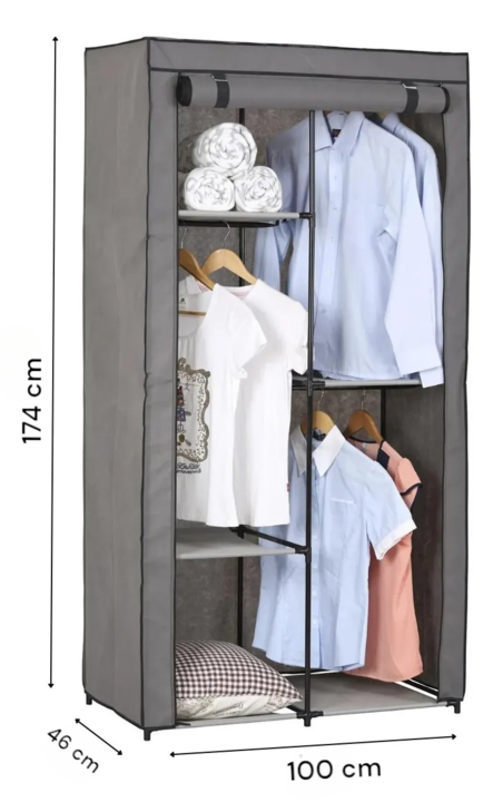 HOGAR ACTUAL GUARDARROPA DE TELA POLIESTER 100x46x174 SKU: 142520 Organiza tu ropa y más con este armario montable con compartimentos. Tiene una estructura estable con tubos de acero en los laterales y en la parte trasera, lo que lo hace duradero y resistente. Con los pies más altos y alejados del s...