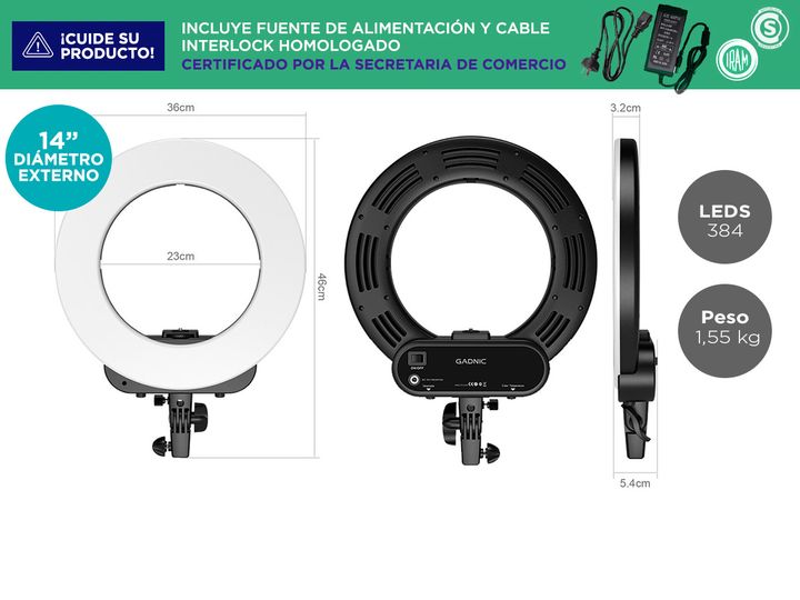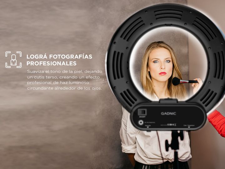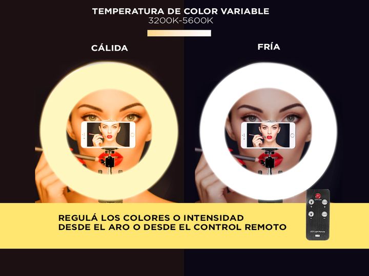 Lleva tus fotos y videos al siguiente nivel con el Aro de Luz LED Ø36cm, ideal para retratos, maquillaje y peluquería. Con 384 LEDs, este aro suaviza el tono de la piel, dejando un cutis terso y creando un efecto luminoso profesional alrededor de los ojos. Gracias a su control remoto, puedes ajustar...