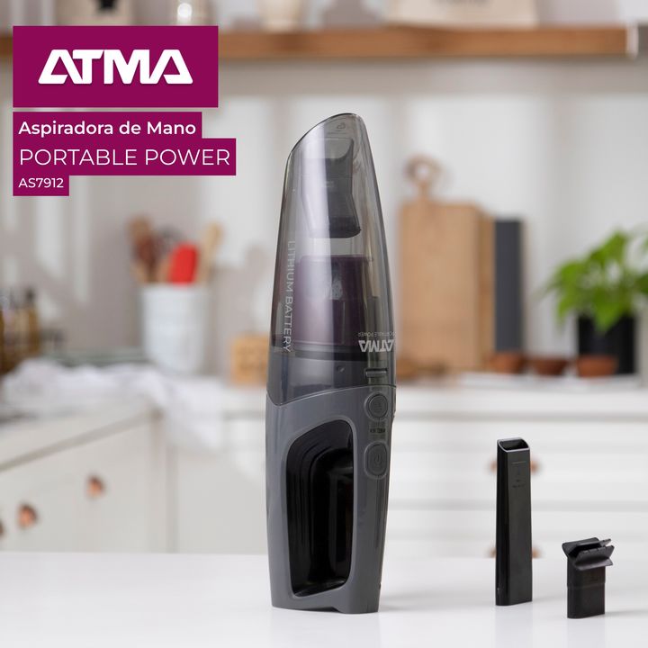 Aspiradora De Mano Atma Inalámbrica Para Polvo y Líquidos AS7912PI ¡Nueva aspiradora ATMA PORTABLE POWER! - Inalámbrica con batería de litio 7.4v que permite hasta 20 minutos de uso continuo, - Aspira polvo y líquidos con facilidad. - Ideal para hogares con perros y gatos ya que recoge pelos de masc...