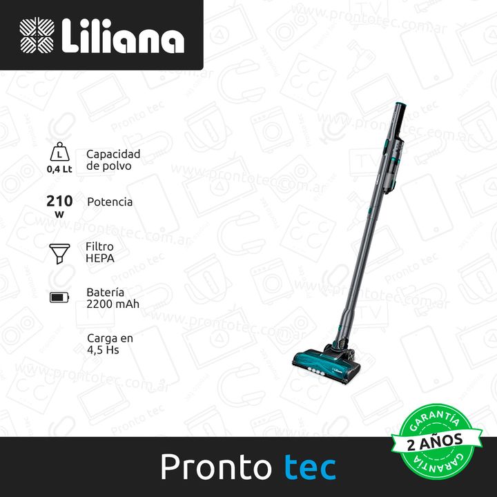 Disfrutá de una limpieza total sin cables y que llega a cada rincón. Con la aspiradora Zuma 2 en 1 de Liliana con filtro HEPA, vas a poder recolectar facilmente todo tipo de residuos sobre todo tipo de pisos. Gracias a su cepillo motorizado con luz LED y el accesorio rinconero y cepillo de cerda par...