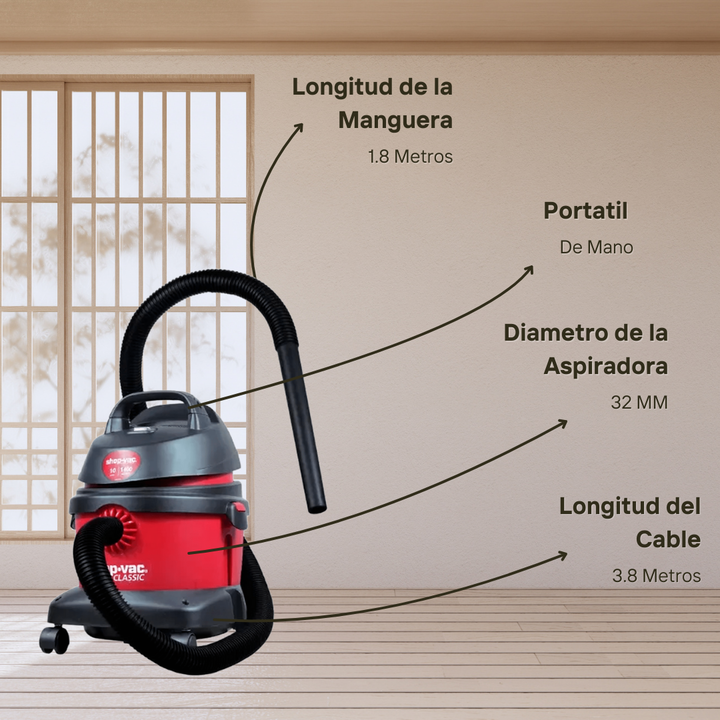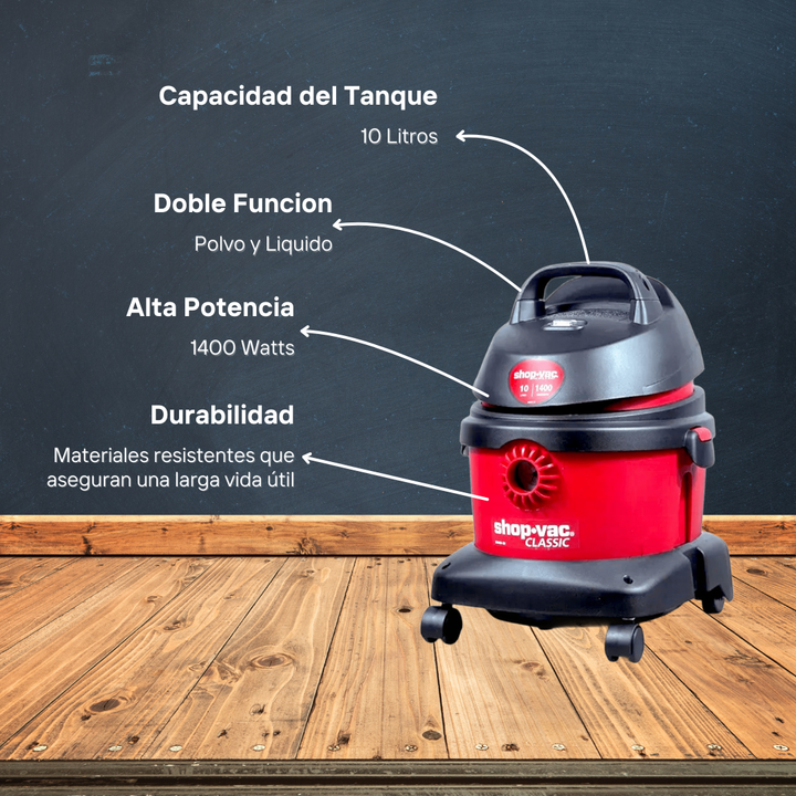 Shop-Vac 10Liters 1400W Wet and Dry Vacuum Cleaner 220V SKU: 58912201 Especificaciones del producto: Potencia: 1400 W Capacidad: 10L Cubo: 1,21 Metro cúbico por minuto: 2,83 Presión sellada: 2039 Watts de aire: 280 Clasificaciones eléctricas: 220 V-240 V / 50-60 Hz Longitud del cable: 3,8 m Longitud...