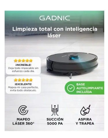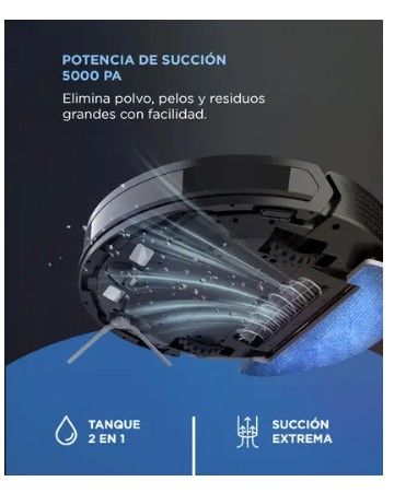 Navegación láser inteligente: Mapea tu hogar en tiempo real para cubrir cada rincón con precisión y eficiencia. Potencia extrema de 5000 Pa: Aspira polvo, pelos y migas con resultados profesionales en pisos duros o alfombras. Limpieza 2 en 1: Aspira y trapea simultáneamente con tanque de agua eléctr...
