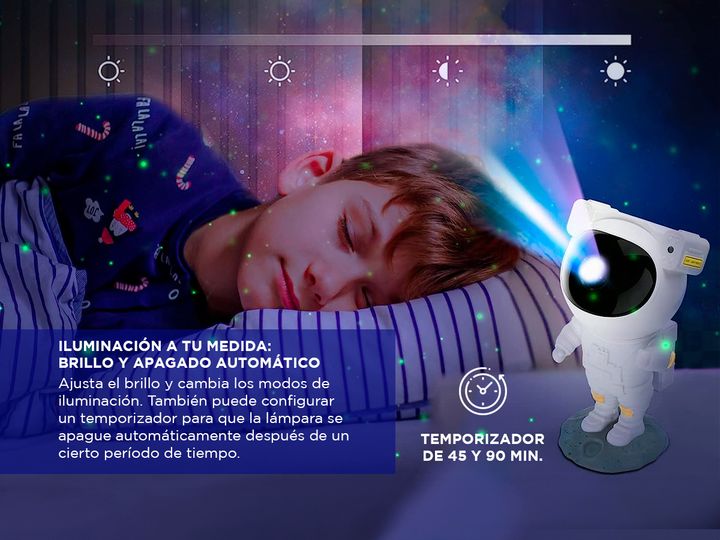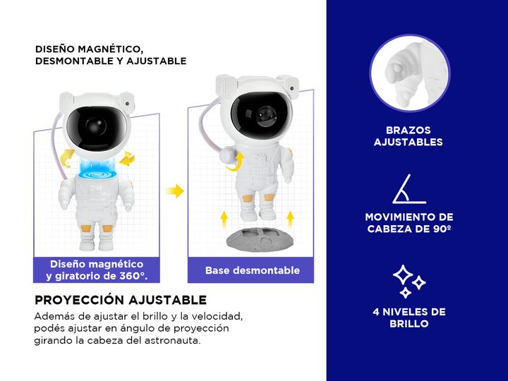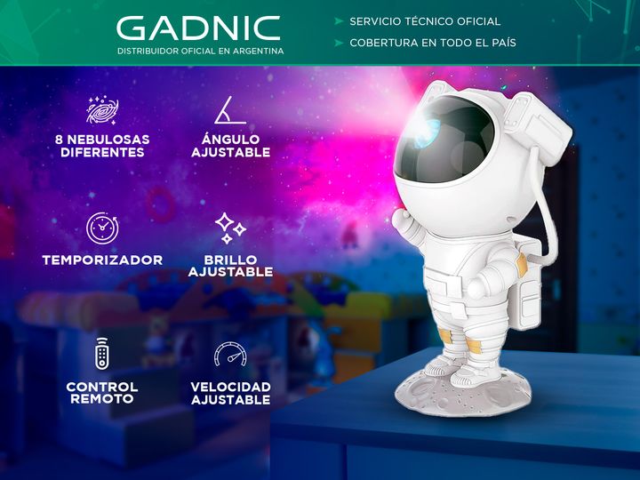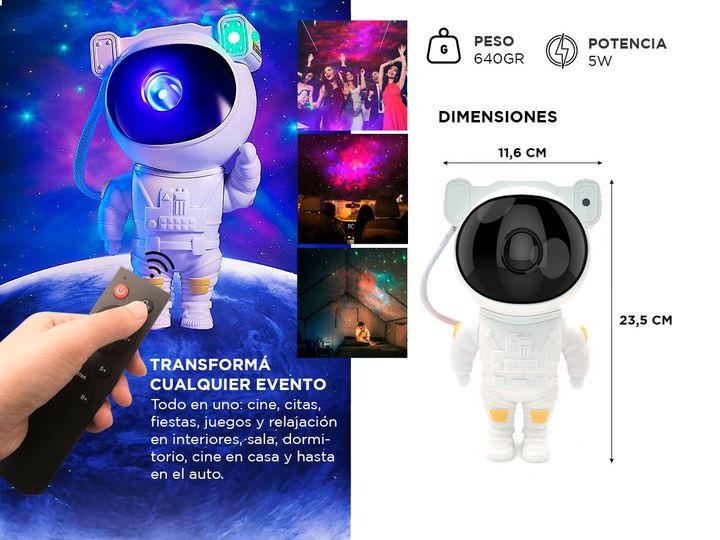 ¡Innovador Astronauta Proyector de Luces de Galaxia Gadnic! Este producto innovador y fascinante es una lámpara de noche que proyecta imágenes del espacio y crea un ambiente mágico en cualquier habitación. La lámpara está diseñada para ser fácil de usar y cuenta con una variedad de características i...