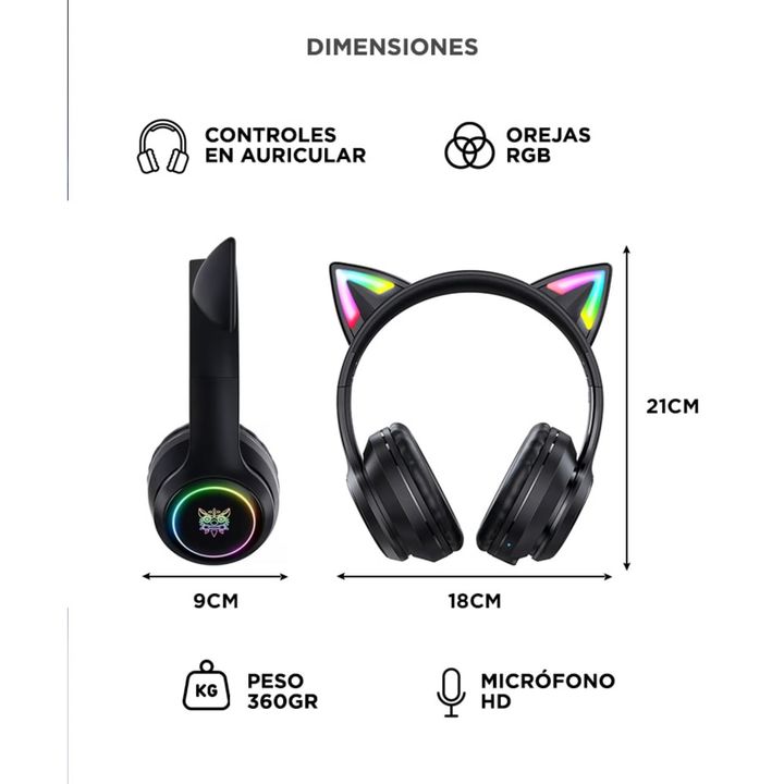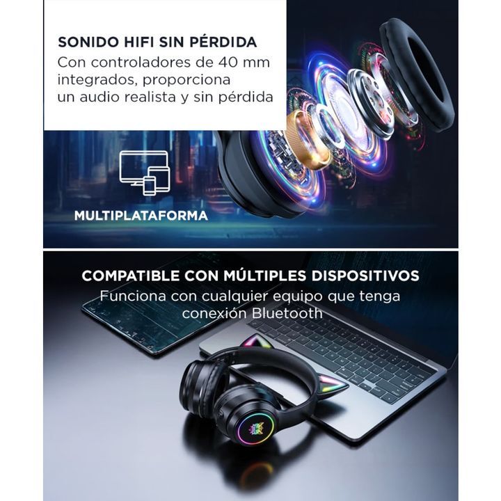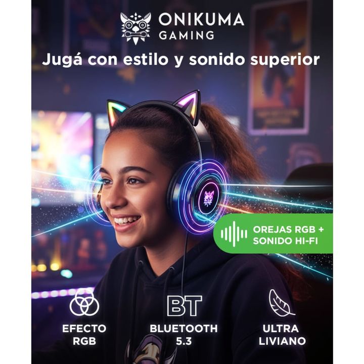 Diseño con identidad gamer: Iluminate con estilo. Las orejas de gato RGB y el logo iluminado te hacen destacar en cada sesión de juego o streaming. Sonido Hi-Fi envolvente: Escuchá cada detalle con audio sin pérdidas. Ideal para juegos, películas y música. Conexión Bluetooth 5.3 estable: Disfrutá de...