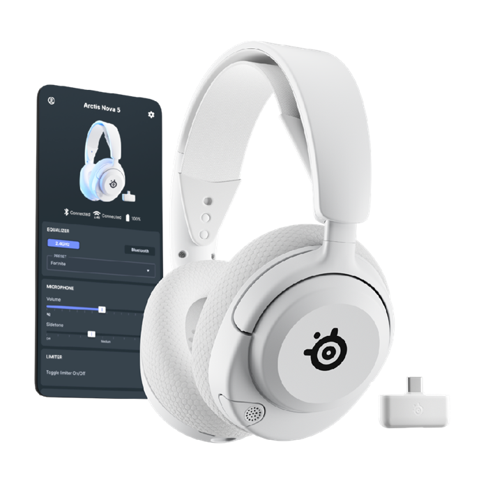 Arctis Nova 5P inalámbrico - Más de 100 ajustes preestablecidos de audio para juegos para un sonido óptimo en los mejores juegos con la aplicación Arctis Companion - Batería de 60 horas de duración para jugar toda la semana, con carga rápida USB-C - Quick-Switch Wireless para alternar entre 2,4 GHz ...