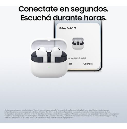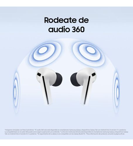 Conectividad y Sensores Versión de Bluetooth: v5.4 Perfiles de Bluetooth: A2DP, AVRCP, HFP Sensores: Sensor Hall, Sensor de Presión, Sensor de Proximidad, Sensor Táctil Conmutación Automática (Auto Switch): Sí Asistente de Voz: Despertar por voz de Bixby (Bixby Voice Wake-up) Servicios Adicionales: ...