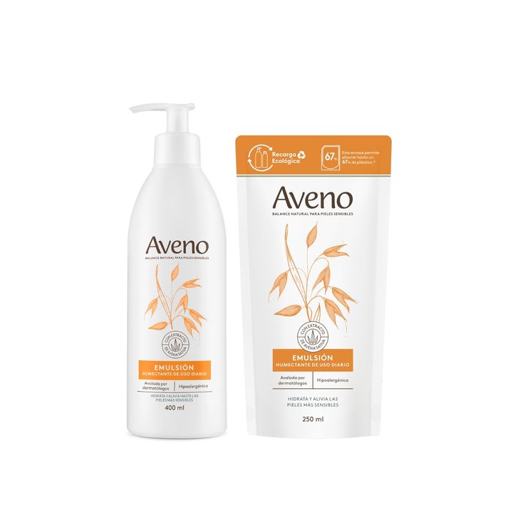 Componentes Emulsion Aveno Corporal Hidrata Humecta Piel Sensible 400 Ml Código: 7793742004391 | SKU: 009006 x 1 uni Aveno Emulsion Emoliente Suavizante Piel Sensible Refill Código: 7793742005565 | SKU: 009026 x 1 uni