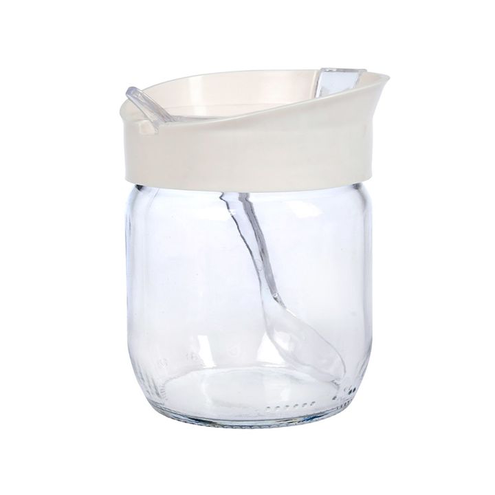 Azucarera recipiente para mermelada, mielera, quesera de vidrio con tapa rosca en platico pvc Tapa y cucharita en acrílico Medidas Diámetro de la base: 7,5 cm Diámetro de la boca: 7 cm Altura: 10/11,5 cm Apertura de la tapa acrílica en forma independiente Marca Aston