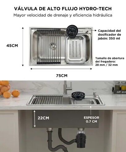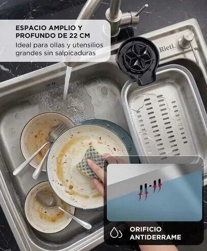 ESTACION DE LAVADO COMPLETA Esta bacha integra fregadero accesorios y sistema de lavado en una sola solucion funcional. Su diseño optimiza el espacio de trabajo y mejora la organización diaria. Permite realizar tareas de lavado preparación y escurrido de forma eficiente. Es ideal para cocinas modern...