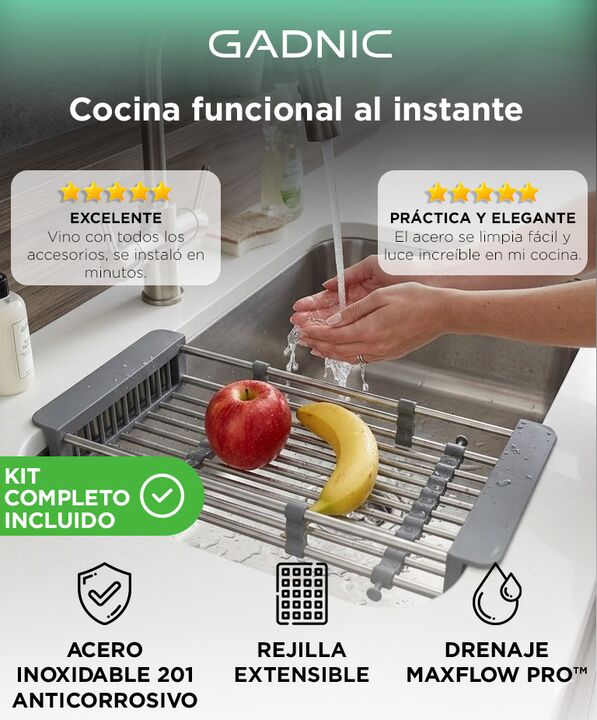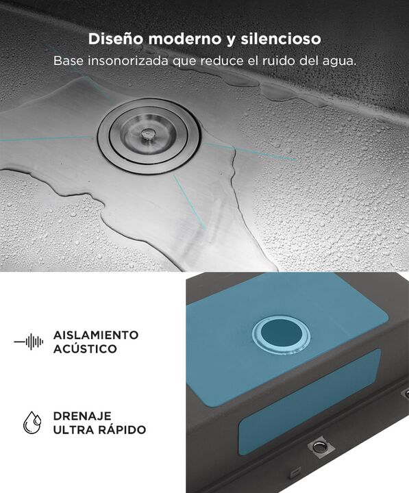 ACERO INOXIDABLE RESISTENTE Y FACIL DE LIMPIAR La bacha Rieti by Gadnic esta fabricada en acero inoxidable 201 que brinda resistencia a la corrosion y uso cotidiano. Su superficie lisa facilita la limpieza diaria y contribuye a mantener condiciones higienicas. El material no poroso ayuda a reducir a...