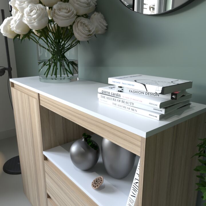 Melamina de alta resistencia: Garantiza durabilidad y fácil mantenimiento. 2 Cajones con correderas metálicas. Puerta con bisagras metálicas. Sistema Minifix. Interiores totalmente revestidos. Incluye instructivo de armado. Medidas: Ancho: 1.10 mts. Alto: 0.89 mts. Profundidad: 0.36 mts. Producto se...