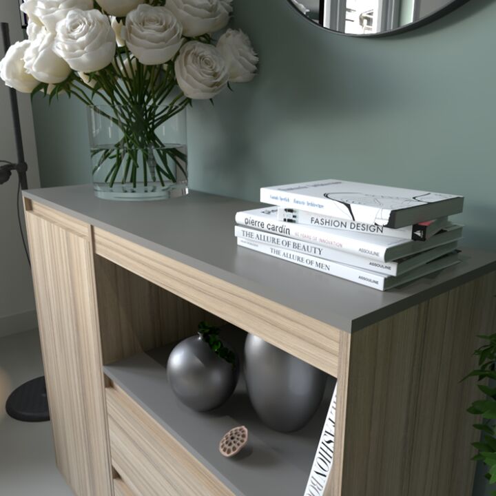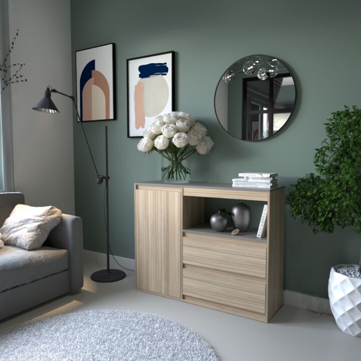 Melamina de alta resistencia: Garantiza durabilidad y fácil mantenimiento. 2 Cajones con correderas metálicas. Puerta con bisagras metálicas. Sistema Minifix. Interiores totalmente revestidos. Incluye instructivo de armado. Medidas: Ancho: 1.10 mts. Alto: 0.89 mts. Profundidad: 0.36 mts. Producto se...