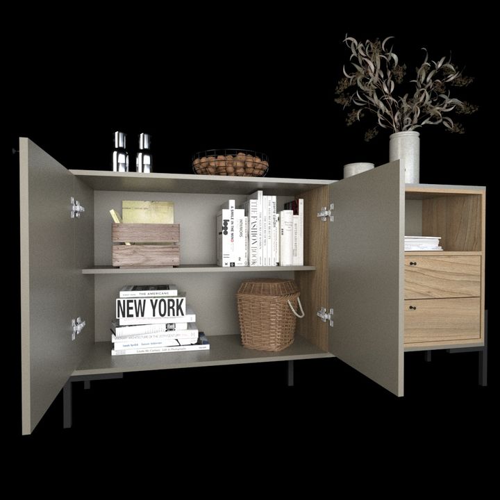 Patas metálicas tipo industrial con regatones de goma para no dañar el piso. Interior en puertas 100% revestido. Interior en puertas 100% revestido. Bisagras metálicas Tiradores metálicos. Combinaciones modernas. Melamina de alta resistencia. IMPORTANTE Los muebles salen embalados en caja con instru...