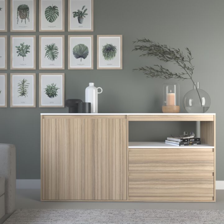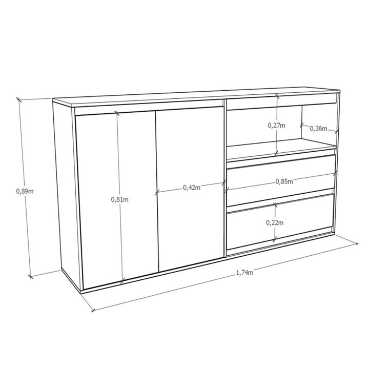 Melamina de alta resistencia: Garantiza durabilidad y fácil mantenimiento. 2 Cajones con correderas metálicas. 2 Puertas con bisagras metálicas. Sistema Minifix. Interiores totalmente revestidos. Incluye instructivo de armado. Medidas: Ancho: 1.745 mts. Alto: 0.89 mts. Profundidad: 0.36 mts. Product...
