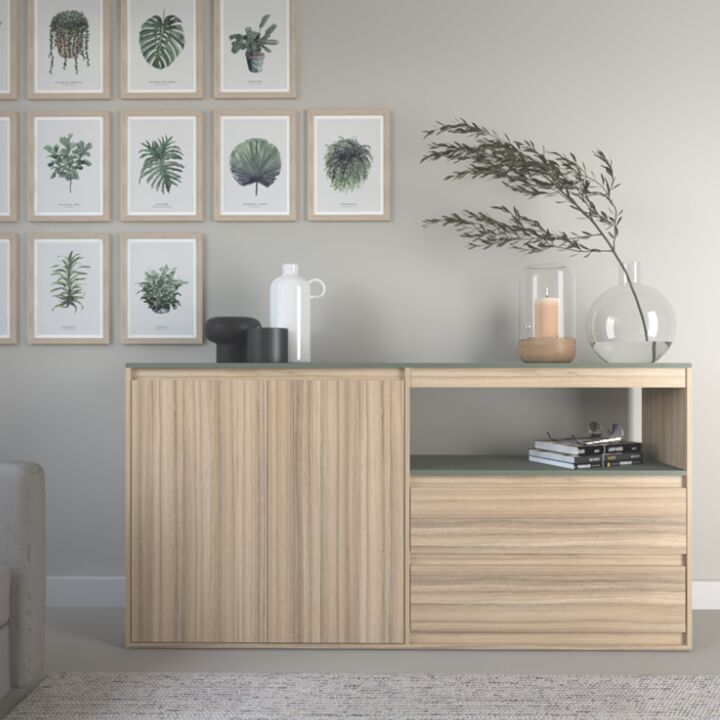 Melamina de alta resistencia: Garantiza durabilidad y fácil mantenimiento. 2 Cajones con correderas metálicas. 2 Puertas con bisagras metálicas. Sistema Minifix. Interiores totalmente revestidos. Incluye instructivo de armado. Medidas: Ancho: 1.745 mts. Alto: 0.89 mts. Profundidad: 0.36 mts. Product...