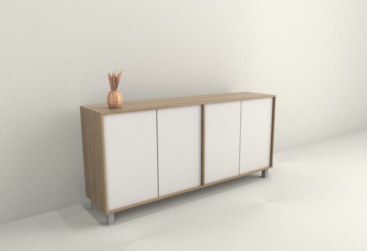 Medidas: Largo 1,80 m - Alto 0,77 m - Profundidad 0,36 m Cantidad de puertas: 4 Cantidad de estantes: 2 Sistema push en puertas Peso: 37 Kg. Sistema Minifix Bisagras metálicas Patas plasticas con Laca UV Melamina de Alta Resistencia IMPORTANTE Los muebles salen embalados en caja con instructivo de a...
