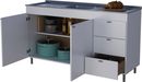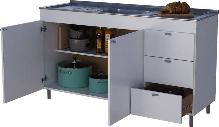 BAJO MESADA 140CM 4014 BLANCO MUEBLES ORLANDI -3 cajones -2 puertas -Correderas plásticas -1 estante -Patas regulables en altura -Cajonera derecha/izquierda -Melamina de 15 mm -Medidas (AnxAlxProf)1400x800x470 mm -Color Blanco -FOTO ILUSTRATIVA / NO INCLUYE TAPA MESADA DE ACERO INOXIDABLE -Modelo 40...