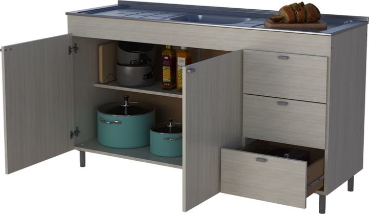 BAJO MESADA 140CM 4017 ABEDUL MUEBLES ORLANDI -3 cajones -2 puertas -Correderas plásticas -1 estante -Patas regulables en altura -Cajonera derecha/izquierda -Melamina de 15 mm -Medidas (AnxAlxProf)1400x800x470 mm -Color Abedul -FOTO ILUSTRATIVA / NO INCLUYE TAPA MESADA DE ACERO INOXIDABLE -Modelo 40...