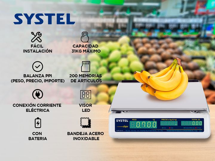 Este instrumento brinda la precisión, calidad y tecnología que necesitás en tu negocio para pesar con exactitud. Además, cuenta con una gran variedad de funciones que permiten trabajar con comodidad. Systel es una empresa argentina en continuo desarrollo que se dedica al diseño, fabricación y comerc...