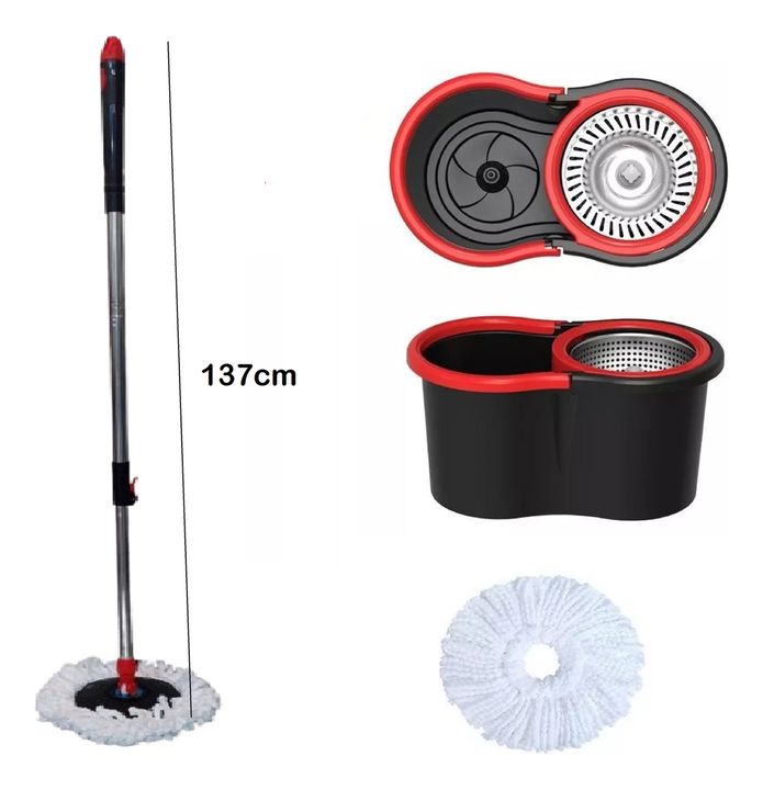 COMBO HOGAR ACTUAL BALDE MOPA CENTRIFUGO NEGRO Y ROJO + X2 REPUESTO MOPA SÚPER ABSORBENTE SKU: 142960-N + 142972 x2 COMBO7142 - Balde centrifugo - Capacidad utilizable 5lts - Tambor de acero - Incluye 4 mopas de microfibra - Incluye Palo completo de 137cm de largo - Con rueditas en la base para faci...