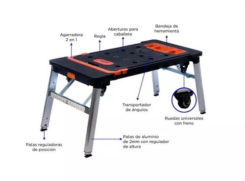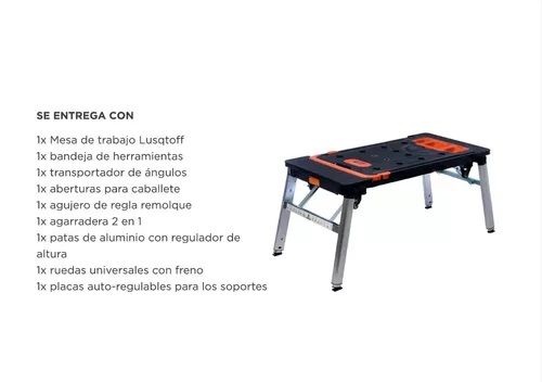 BANCO TRABAJO CONVERTIBLE MESA CARRO CABALLETE 7EN1 LUSQTOFF BTCL7-8 Este banco de trabajo multipropósito es la solución perfecta para tus proyectos. Con una altura ajustable de 52 a 78 cm y una capacidad de carga de hasta 150 Kg, sirve como banco, caballete, soporte, plataforma, camilla y carro de ...
