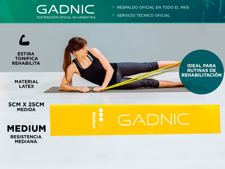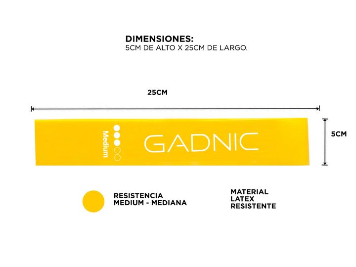 Esta banda de resistencia Gadnic en color amarillo es perfecta para estirar, tonificar y rehabilitar músculos, con un nivel de resistencia mediana. Está fabricada con material de látex, lo que garantiza su durabilidad y flexibilidad en cada ejercicio. Sus dimensiones de 5 cm de ancho por 25 cm de la...