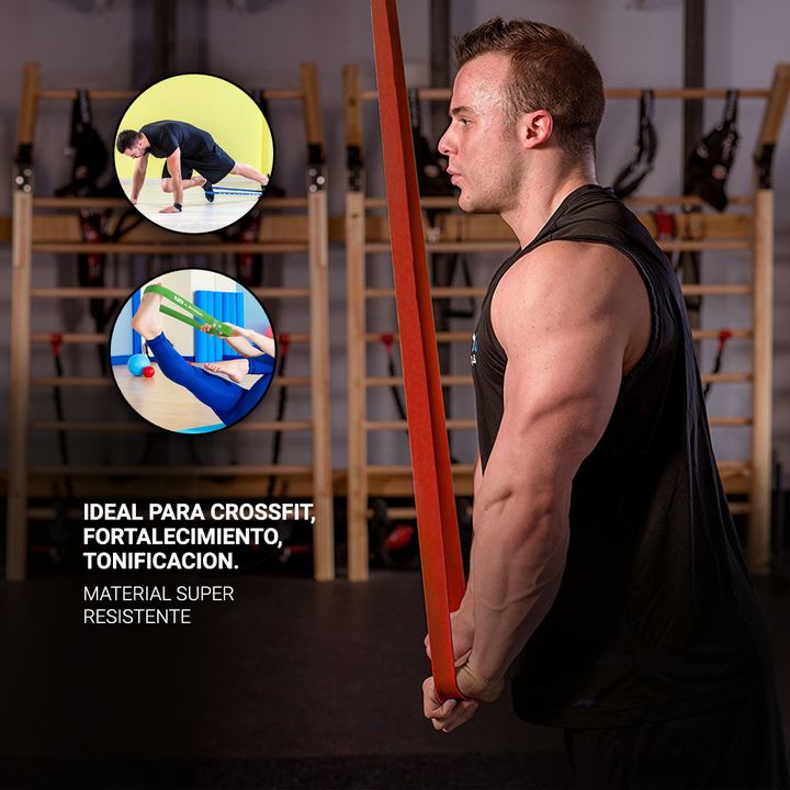 Banda de resistencia Extreme de material super resistente para estirar y tonificar. Ideal para crossfit, fortalecimiento y tonificación. Especificaciones Resistencia baja Ideal para Crossfit, tonificación, fortalecimiento. Color: Rojo Largo: 2,08 m Alto: 1,3 cm Grosor: 0,45 cm