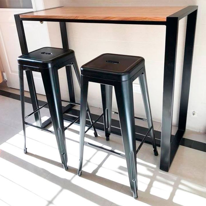 Banqueta Metalica Alta Tolix Terminacion negro mate Medidas Alto total: 76 cm. Asiento: 42 x 42 cm. Con apoya pies.