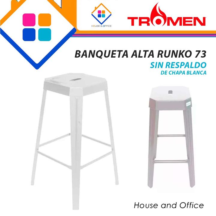 BANQUETA X2 RUNKO 73 TROMEN ALTA SIN RESPALDO DE CHAPA BLANC Marca:Tromen Código: 73X2BLANCO ESTILO + FUNCIÓN + COMODIDAD Disfrutalas en galerias, quinchos y espacio semicubiertos como patios, terrazas, balcones y jardines ERGONÓMICAS + RESISTENTES Ideal para locales gastronómicos y comerciales Dime...