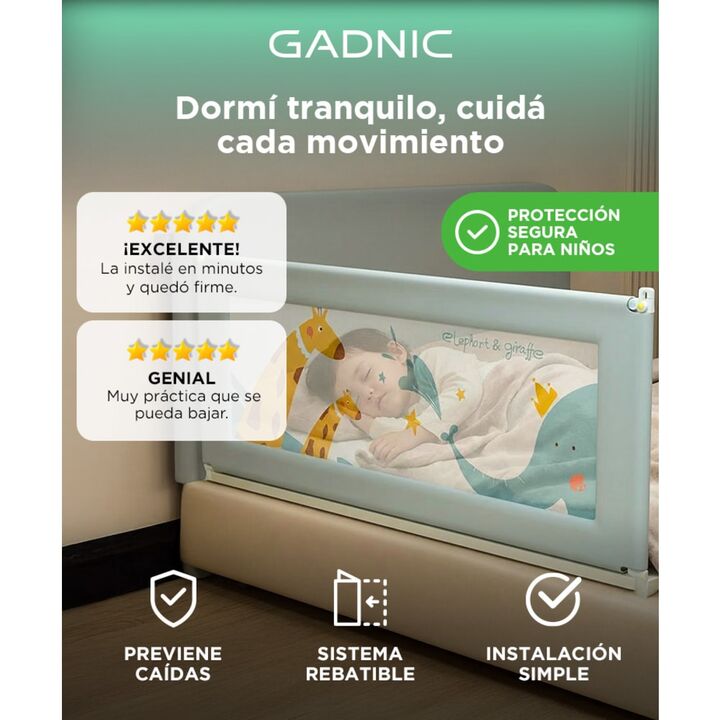 Introducí tranquilidad y comodidad con nuestra Baranda de Seguridad de Cama para niños. La seguridad de tus hijos es nuestra máxima prioridad, por lo que esta baranda está especialmente diseñada para ser segura para los más pequeños. Su estructura sólida y resistente garantiza que tu pequeño esté pr...