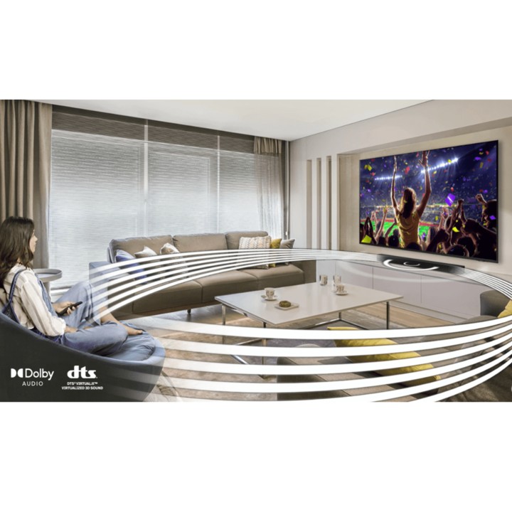 Barra de Sonido Samsung con Subwoofer 2.1 HW-B555ZB Destacados - Dolby Audio / DTS Virtual:X - Subwoofer incluido - Bass Boost - Adaptative Sound Lite Mejora tu experiencia con un sonido envolvente 3D. Tecnología de audio cautivadora que mueve el sonido a tu alrededor Dolby Audio / DTS Virtual:X DTS...