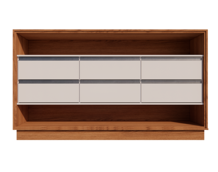 Descripcion Bahiut ideal para living, pero funcional también como cómoda de dormitorio o barra separadora de comedor/living. Cuenta con 6 cajones con correderas telescópicas y perfilería de aluminio. La combinación de colores es súper moderna y minimalista. Dimensiones: Ancho: 180cm Alto: 103cm Prof...