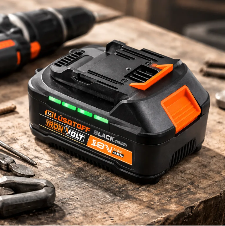 BATERIA DE LITIO 4AH 18V BLACK SERIE LUSQTOFF Compatible solo con productos Black Serie ESPECIFICACIONES: • Tensión: 18 V • Amperaje: 4.0 A • Conector: uso tipo C • Sistema inteligente de carga • Detección: ingreso de tensión • Garantía de Fabrica con Lusqtoff : 6 meses • Puerto USB Garantía 6 meses