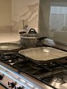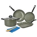 Batería Antiadherente linea Terra Premium de 1,8 mm de espesor compuesta por : Aluminio recubierto con antiadherente de 1,8 mm de espesor con mangos Baquelita negra Set compuesto por : Olla 24 cm con tapa de vidrio templado con orificio para salida de vapor, 1,8 mm de espesor. Altura de olla : 12 cm...