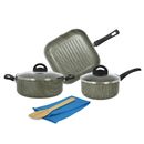 Batería Antiadherente linea Terra Premium de 1,8 mm de espesor compuesta por : Aluminio recubierto con antiadherente de 1,8 mm de espesor con mangos Baquelita negra Set compuesto por : Cacerola 24 cm con tapa de vidrio templado con orificio para salida de vapor, 1,8 mm de espesor. Altura de olla : 9...