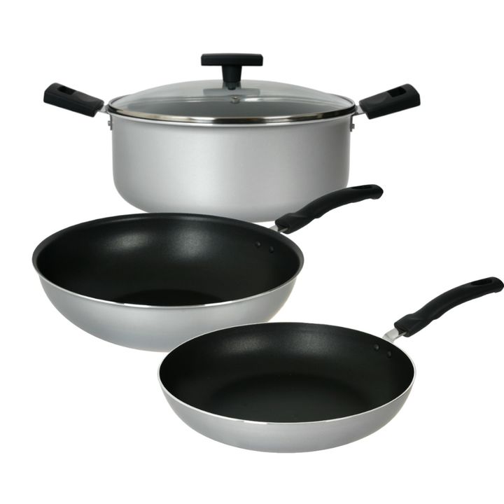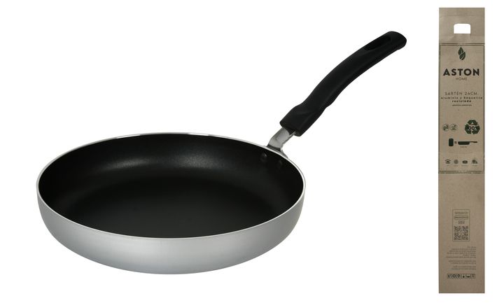 Batería de Coccion Aston Ecologica Reciclada compuesta por : Material : Aluminio Reciclado con antiadherente en su interior de 2 mm de espesor. El mango es fabricado a partir de materias primas naturales y materiales regenerados. Cacerola 24 cm con tapa de vidrio templado con orificio para salida de...