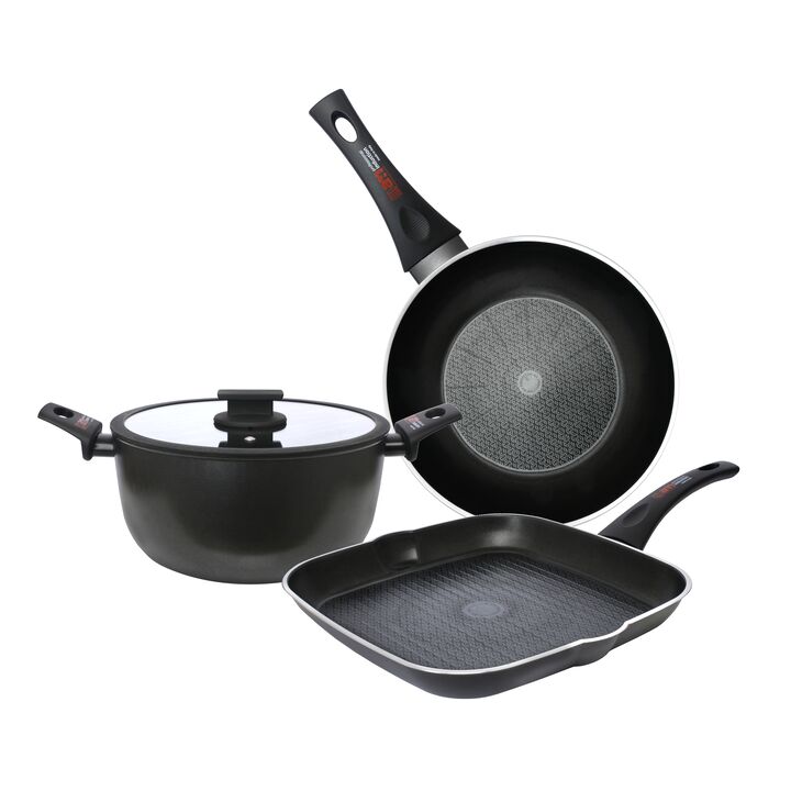 Bateria de cocina de la mas alta calidad , origen Italiana Aluminio puro 99,5%, espesor 3,5 mm / 4mm , forjado para una perfecta difusión del calor y una mejor cocción de los alimentos. PFOA FREE ( Cocina sana ) / NICKEL CADMIUM LEAD FREE ( Revestimiento Salvanatura) / AM SALUS EXTRA STONG ( Revesti...