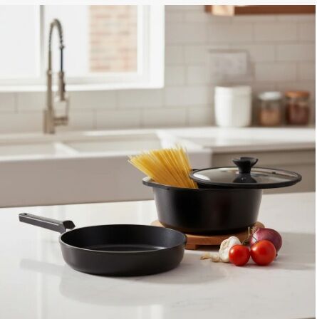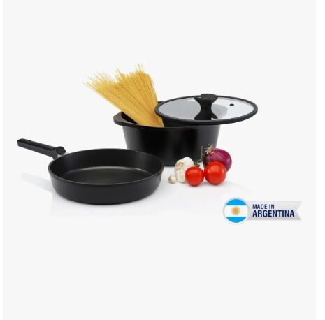 BATERIA DE COCINA TIO TITO ALUMINIO ANTIADHERENTE 3 PZS 24CM Este set de 2 piezas de aluminio fundido te permite cocinar con eficiencia y facilidad. Su recubrimiento antiadherente sin PFOA evita que los alimentos se peguen y facilita la limpieza. Incluye: - Cacerola Ø24cm con tapa– Ideal para sopas,...