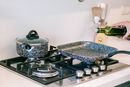 Batería Aston Pedra Gris Premium compuesta por : Material : Aluminio con antiadherente de 1,8 mm de espesor con mangos Baquelita negra Cacerola de 24cm con tapa de vidrio templado con orificio para salida de vapor, 1,8 mm de espesor. Altura de olla : 9,5 cms / Capacidad : 4,5 lts. Cacerola 18 cm con...