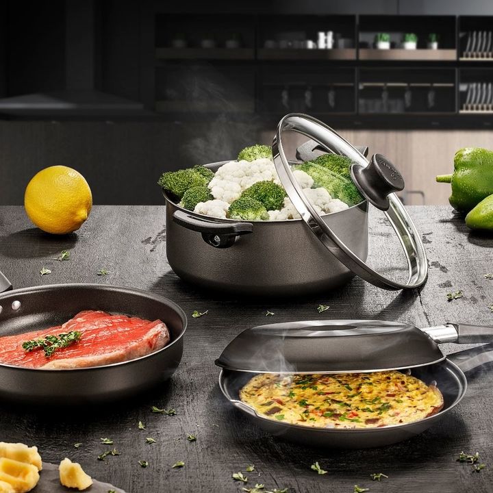 <p><em>*Medidas:</em><br /><em>Bifera Rectangular 24cm </em><br /><em>Alto 10cm x Diametro 24cm Capacidad 0.9 Litros</em><br /><br /><em>Sarten 24cm</em><br /><em>Alto 3cm x Diametro 24cm Capacidad 1.1L</em><br /><br /><em>Panquequera 22cm </em><br /><em>Alto 2cm x Diametro 22cm Capac...