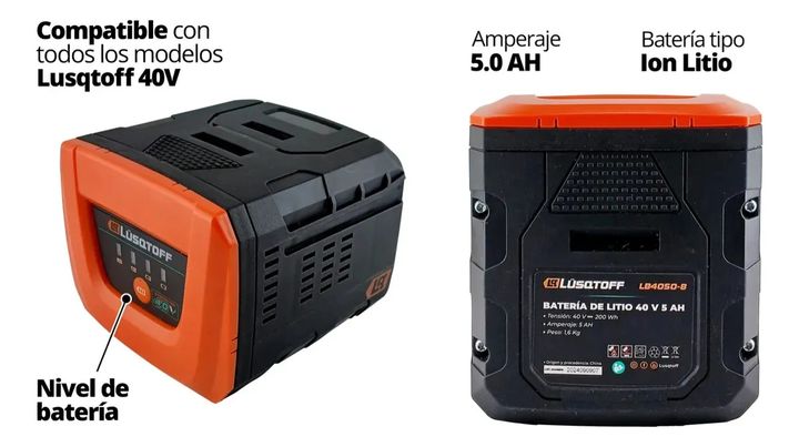 BATERIA RECARGABLE DE LITIO 40V LUSQTOFF LB4050-8 ECO LINE BATERIA DE LITIO 40V 5AH • ECOLINE Esta batería no es solo un accesorio, es una inversión en versatilidad y eficiencia. Su avanzada tecnología de litio NCM te garantiza un rendimiento superior y una durabilidad excepcional. Con hasta 300 cic...
