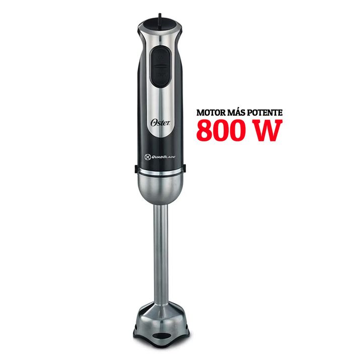 Potencia, precisión y versatilidad en un solo equipo El stick mixer Oster® FPSTHB2800 es la herramienta ideal para preparar todo tipo de recetas de forma rápida y práctica. Gracias a su cuchilla Quad Blade de acero inoxidable, logra un mezclado más uniforme y eficiente, ideal para sopas, salsas, lic...