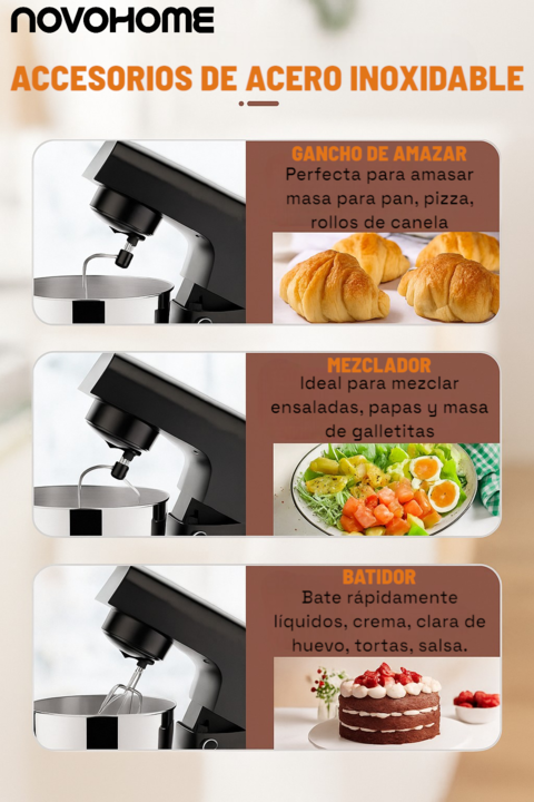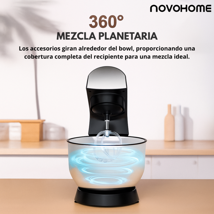 NOVOHOME BATIDORA PLANETARIA 1500W SKU NEGRA: NH-SM 50 SKU ROJA: NH-SM 50MR CREATIVIDAD Y SABOR EN CADA VUELTA Diseñada para quienes buscan precisión y elegancia, la batidora Novohome combina un potente motor con movimiento planetario para lograr mezclas homogéneas y resultados profesionales. Su rob...
