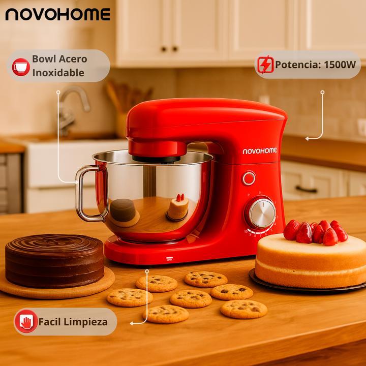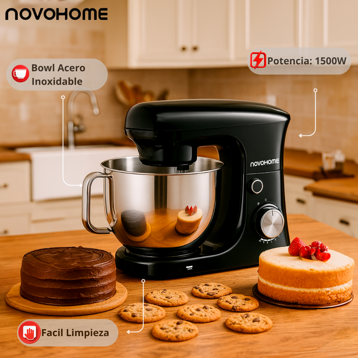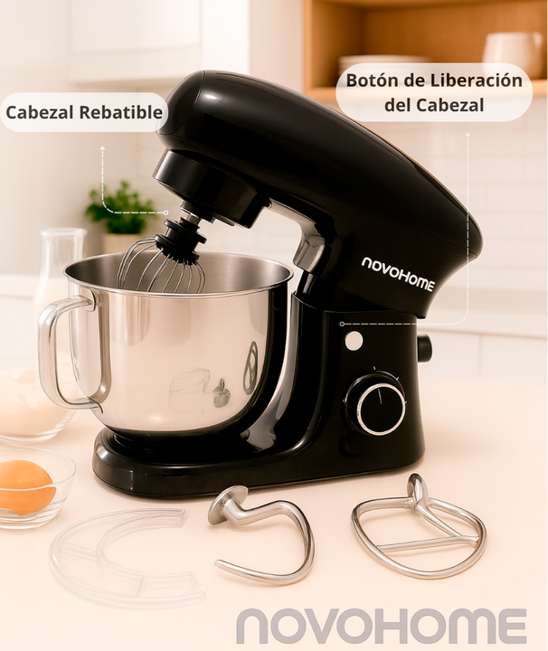 NOVOHOME BATIDORA PLANETARIA - BOWL CON MANIJA - 1500W SKU: NH-SM 60 SKU: NH-SM 60MR CREATIVIDAD Y SABOR EN CADA VUELTA Diseñada para quienes buscan precisión y elegancia, la batidora Novohome combina un potente motor con movimiento planetario para lograr mezclas homogéneas y resultados profesionale...