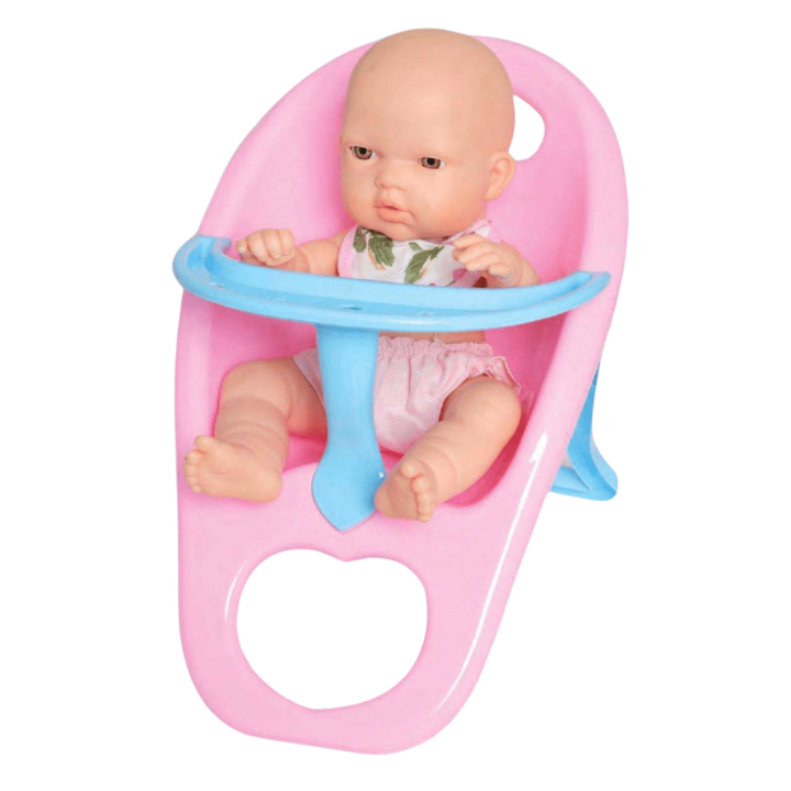 Bebé Cariñito con silla de comer 25cm Desarrolla la creatividad y alimenta al bebé en su sillita incluída. Cada presentación tiene un vestuario único e inigualable. Las prendas son surtidas/aleatorias.