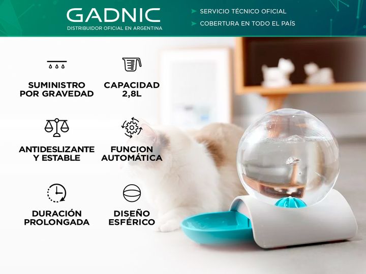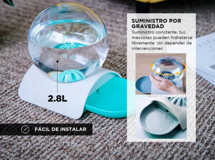 ¡Cuida a tus mascotas de manera eficiente y sin esfuerzo con el Bebedero Esférico Gadnic de 2.8 litros! Este dispensador automático asegura que tus amigos peludos tengan acceso constante a agua fresca y limpia. Capacidad Generosa: Con una capacidad de 2800 mL, este bebedero esférico proporciona un s...